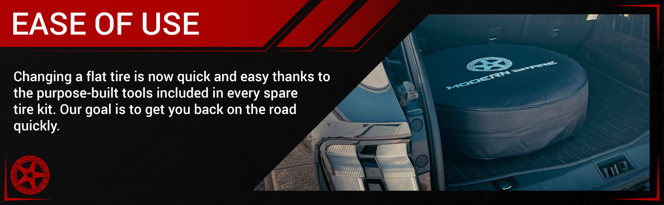 The sealant in these kits can also damage tire-pressure monitoring systems. Some replacements ranging up to $300 – $400 apiece. Modern Spare designs and sells spare tire kits engineered specifically for your car. Our kits are a modern solution and a vast improvement over the factory-supplied solutions. We offer spare tire kits for many GM, Dodge/Chrysler, and all Tesla models with many more makes and models being introduced soon.