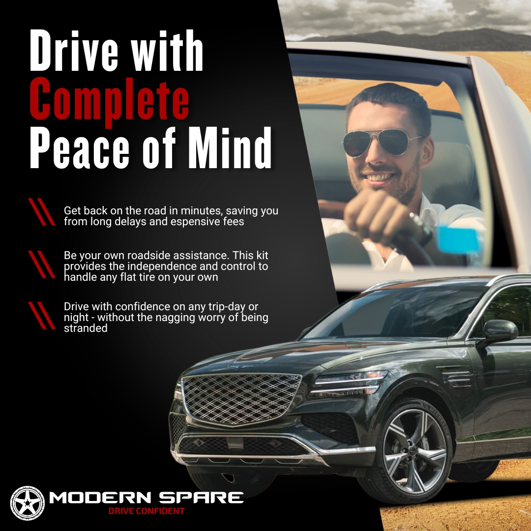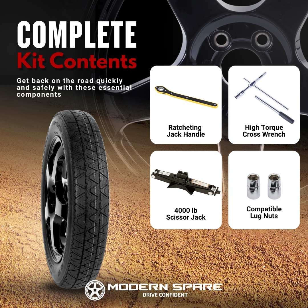 *Not all fitments will result in an exact match in tire diameter. However, Modern Spare ensures that the tire size used for your vehicle model is the proper size and fit for your vehicle (including AWD, High-performance, and EVs).